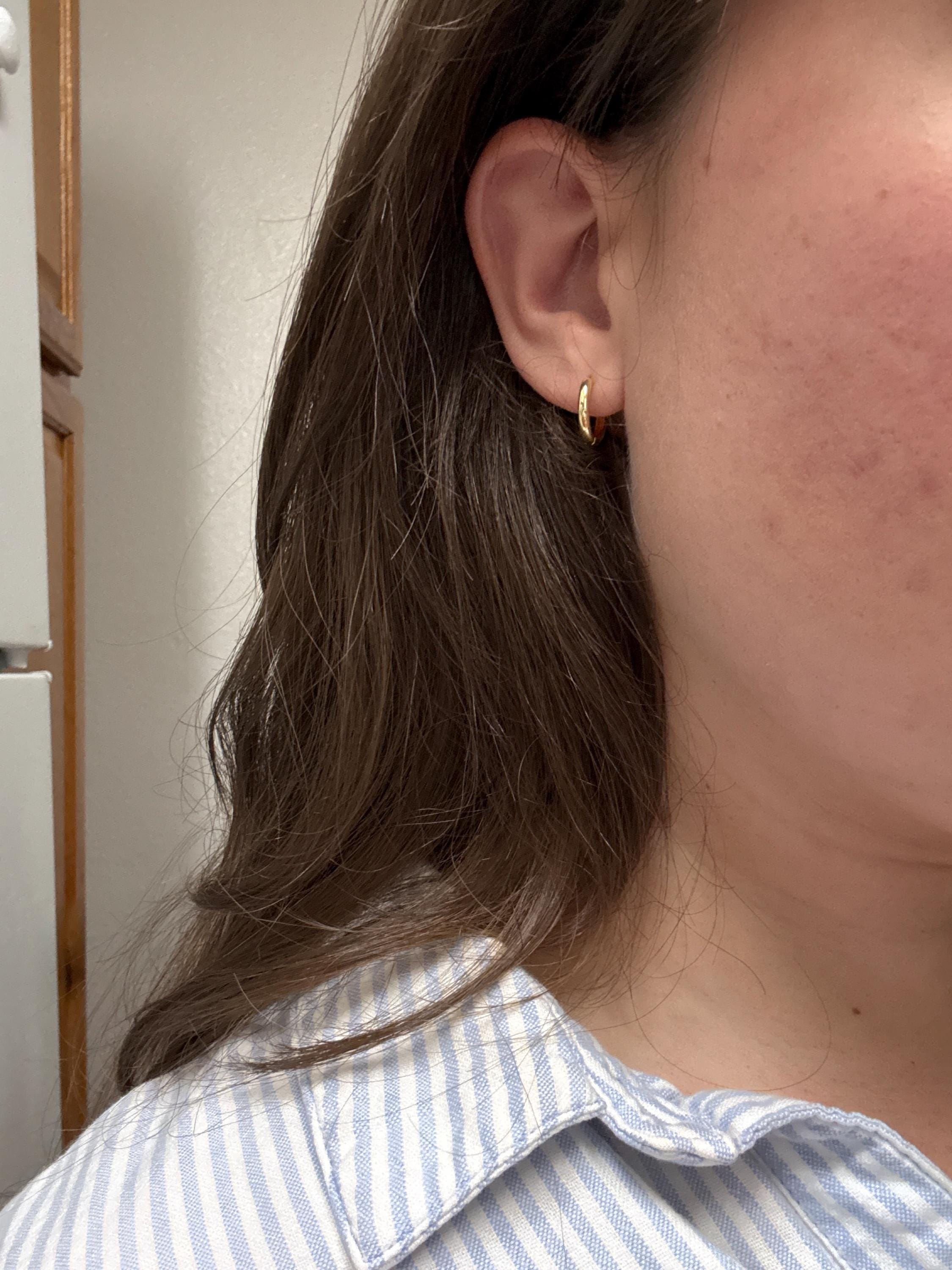 I love these earrings. They are super comfortable and I’m able to sleep in them. There was a small issue with one of the hoops but I reached out to the seller and they sent a replacement quickly!